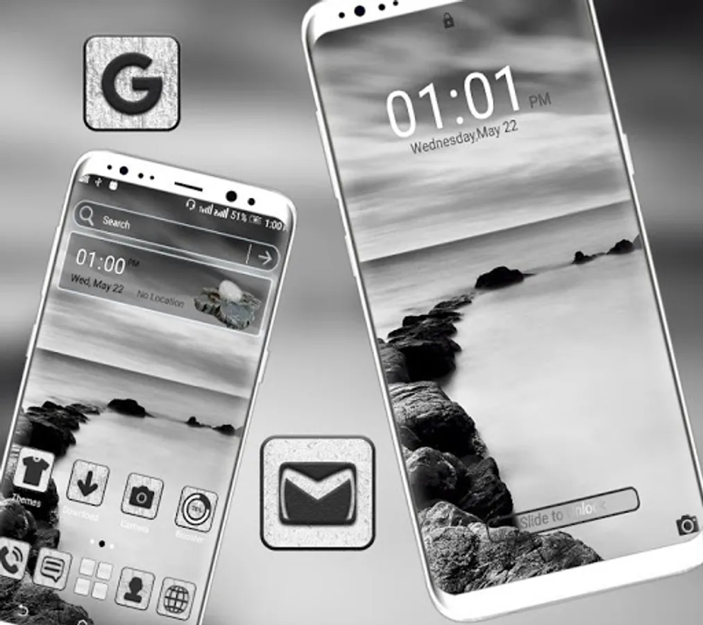 Sea Stone Monochrome Theme have Sea Stone backgrounds, Soft app icons, Sea Stone fashion wallpapers This Sea Stone Monochrome Launcher (icon packs) theme is specially designed for people like you who love Sea Stone Style.