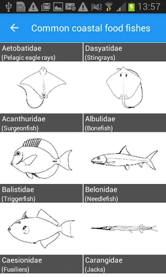 Learn to recognize fishes and invertebrates from Pacific Island countries and territories with this application, developed and maintained by the Coastal Fisheries Programme of the Pacific Community (http://www.spc.int/coastfish)