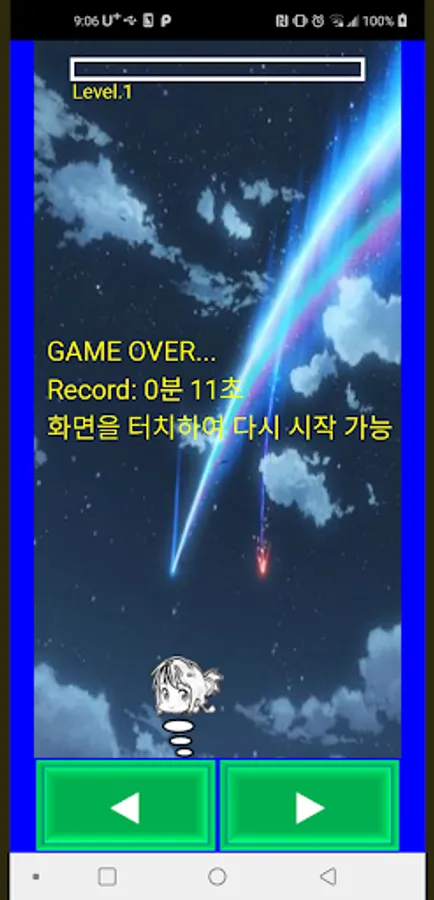 캐릭터를 조종해서 떨어지는 혜성을 게속 피해나가는 게임입니다. 혜성을 약 5개 정도 맞으면 게임이 종료됩니다.