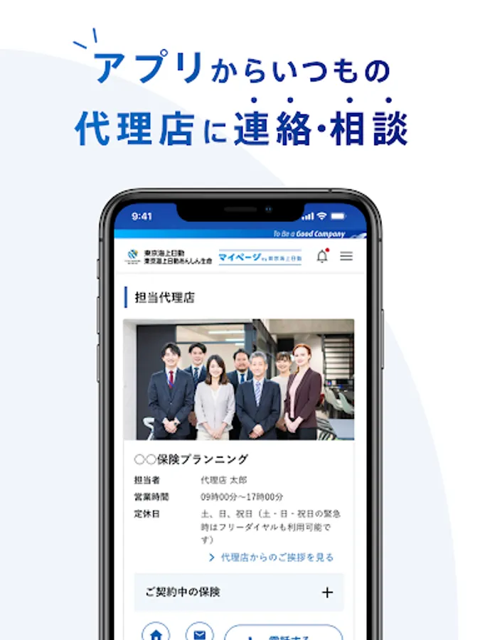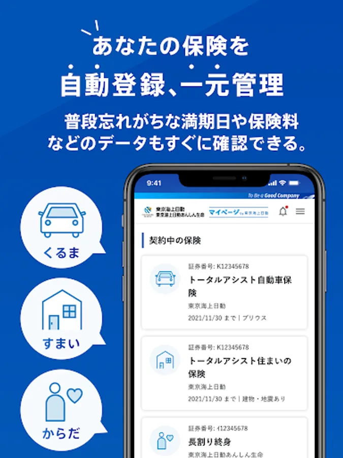 This is the smartphone app "Tokio Marine & Nichido My Page" provided by Tokio Marine & Nichido and Tokio Marine & Nichido Life Insurance.