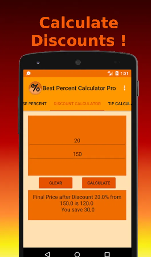 The simple design and the implementation make the Best Percent Calculator Pro an indispensable component of your smartphone!