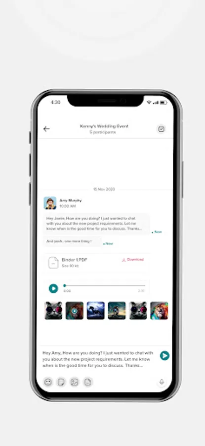 Chat: Start a topic-based chat and calls in real-time for seamless collaboration with clients or friends.