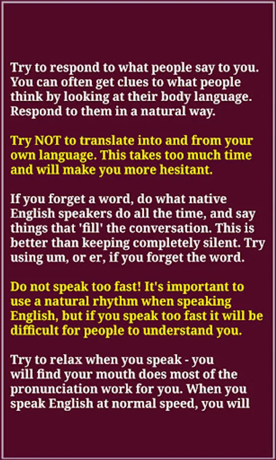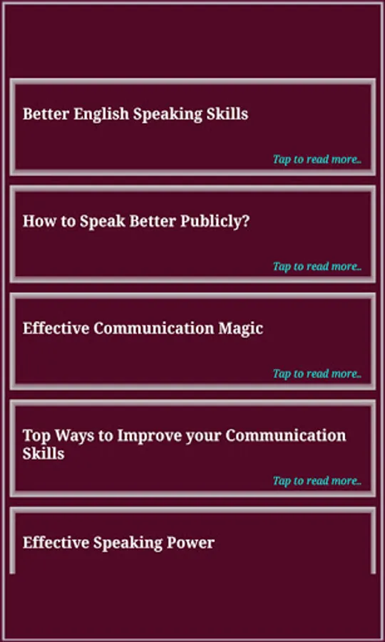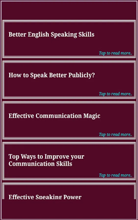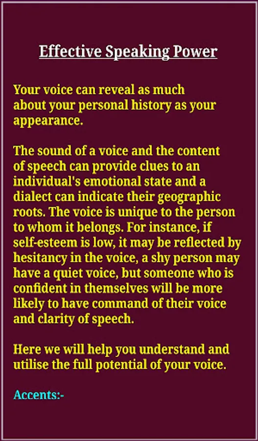 Improving your English speaking skills will help you communicate more easily and effectively. But how do you become a more confident English speaker? People who are interested in mastering the art of public speaking can adopt the following traits also. This application will guide you the skills you need for a happy and successful career and this is just one confident medium which will help you to speak without fear, tension, flawlessly. Download our free application, and practice and follow as per our application's advice which will really help you to supercharge your career! So...Why are you waiting for??? Discover all the best techniques on how to improve Communication or Speaking Skills in both way, professionally and personally with this great app.