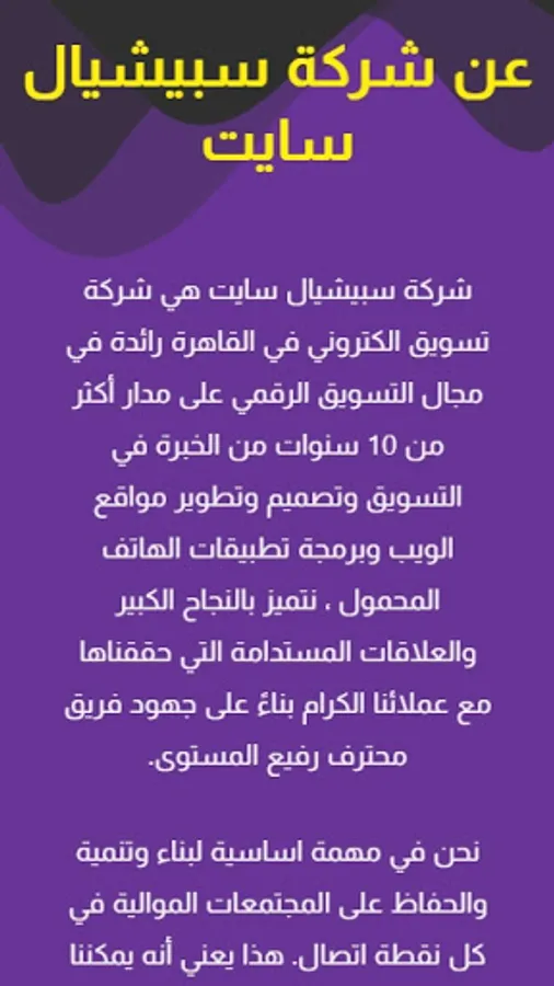 Special Site Company is an e-marketing company in Cairo, a leader in the field of digital marketing with more than 10 years of experience in marketing, designing and developing websites and mobile application programming. .