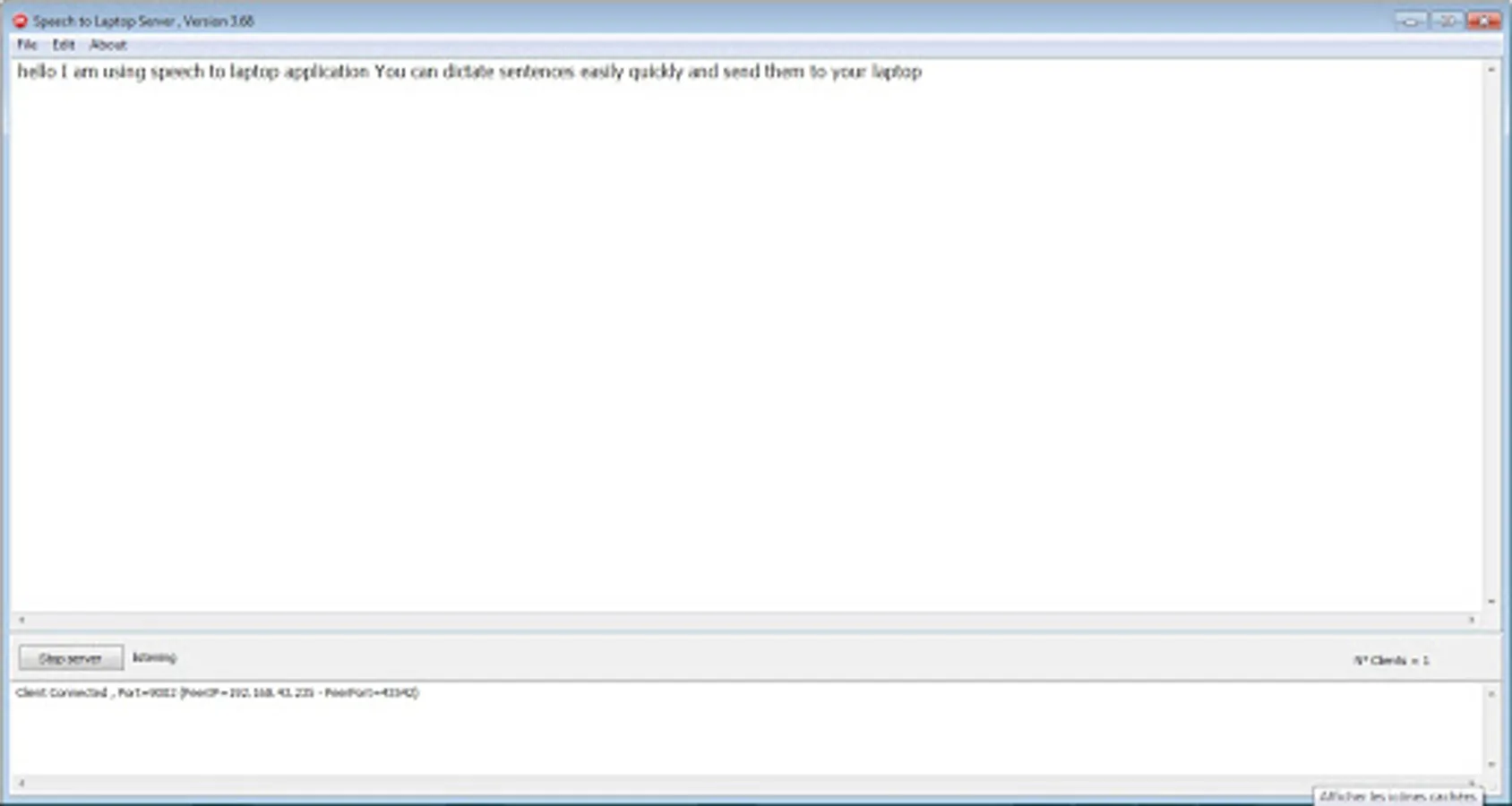 This application is a client that connect to the server running in the laptop which run windows operating system.
