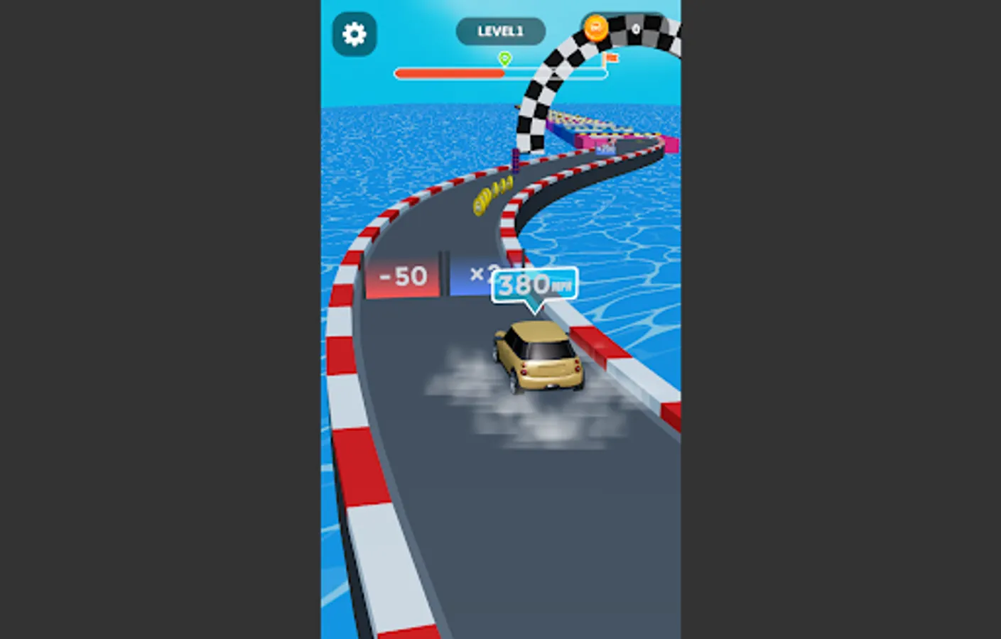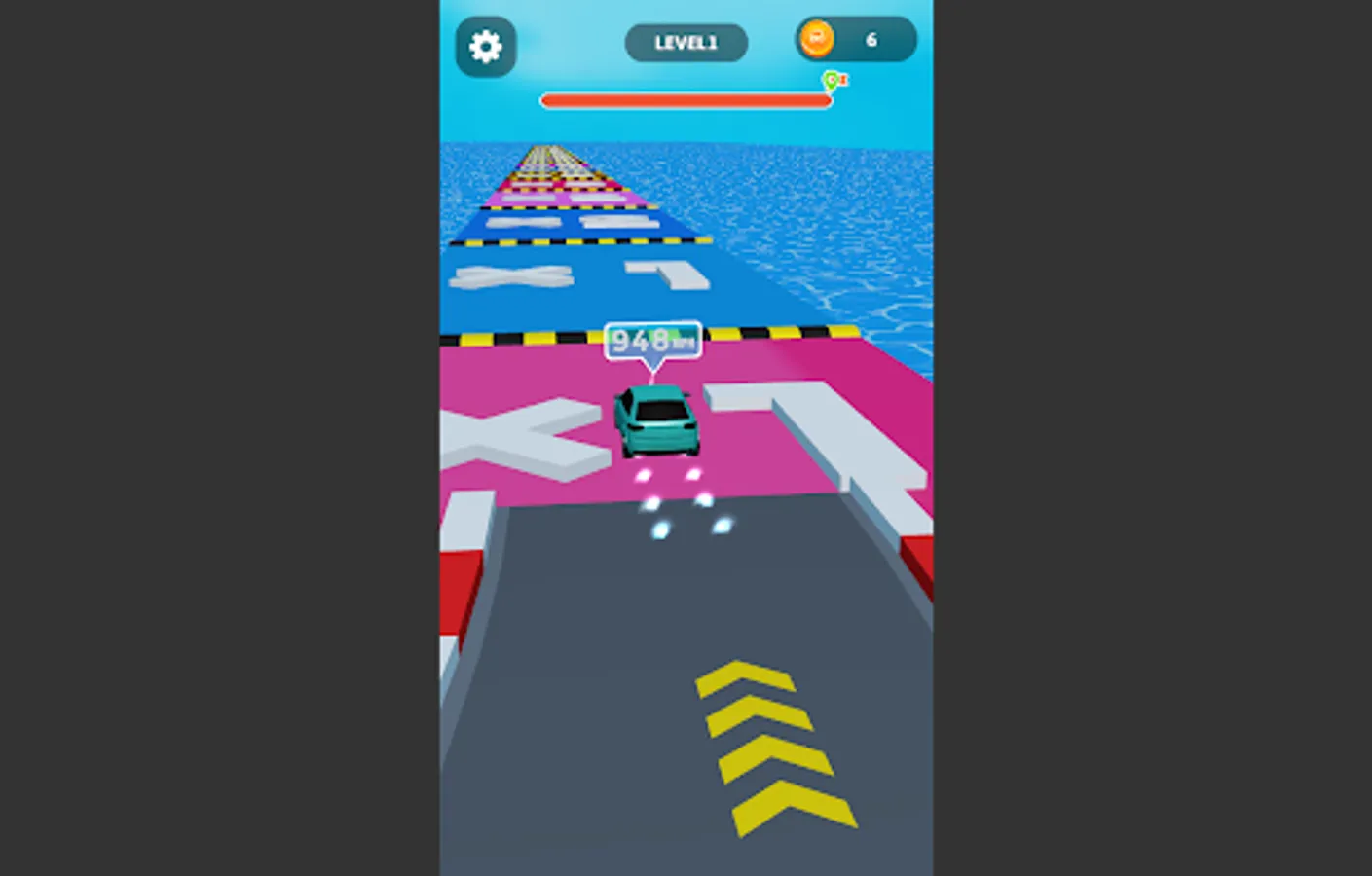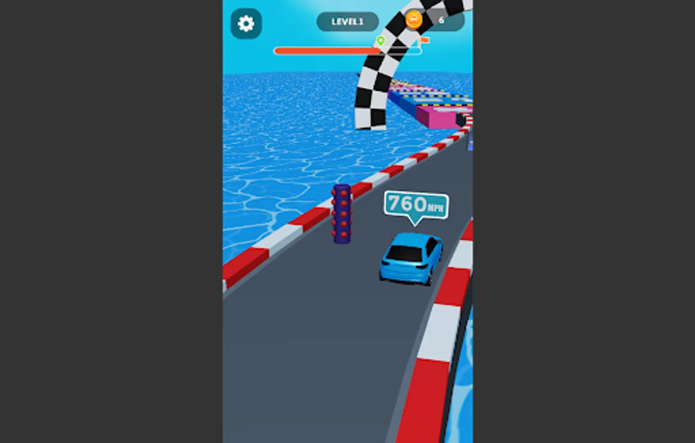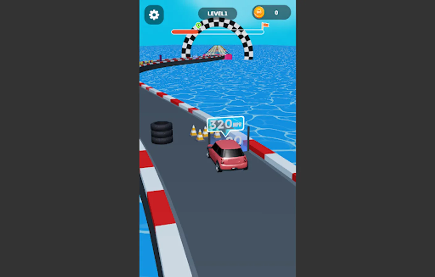 This is a big challenge! Beat yourself! This is extraordinary fast drive! Choose a gate which will accelerate yourself. When you pass through blue gate your velocity will be higher.There are some obstacles on the way such as stop sign, unused tires. Don’t hit them. They will slow you down.