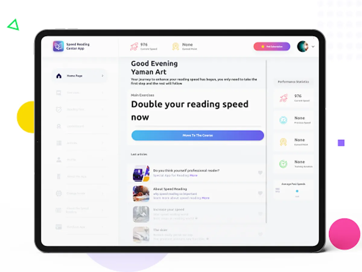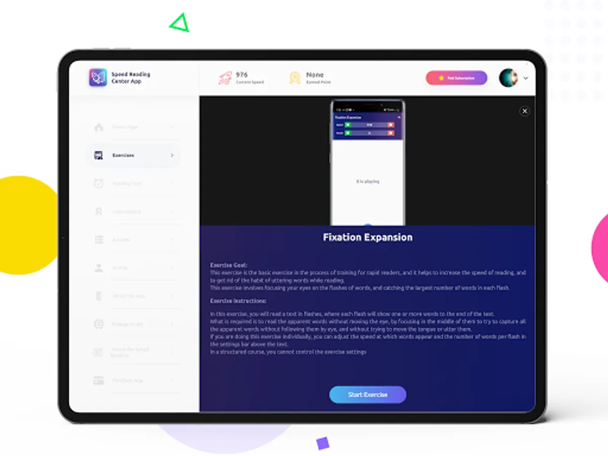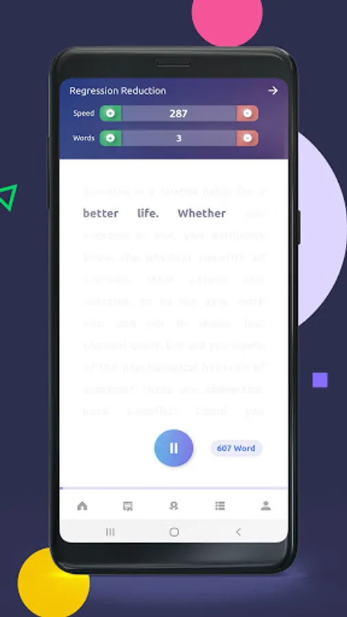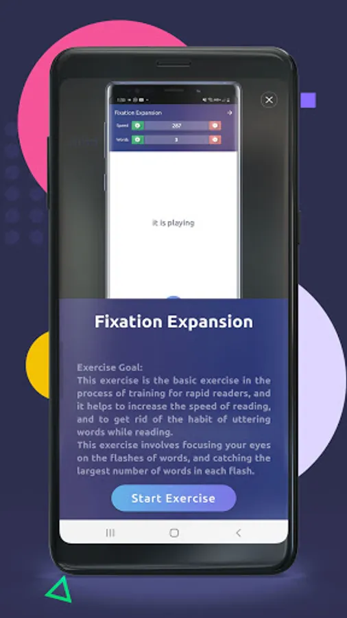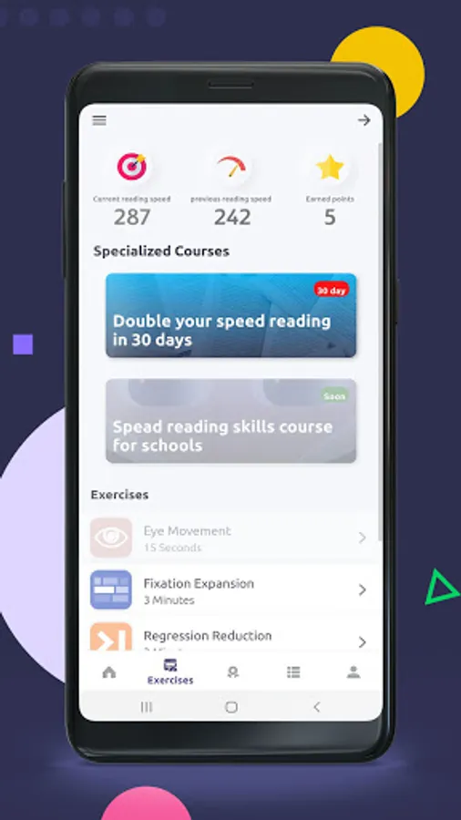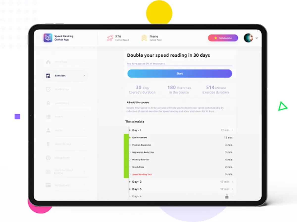 The app also contains a scientific course that enables a reader to increase reading speed within 30 days, through daily follow up to a targeted set of drills and exercises.