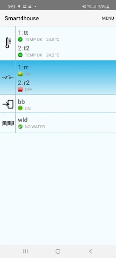 Our application is used to display the status of various sensors of the series Smart4house, In this time (Water leak detector, Binary sensor, Temperature sensor and Wifi relay).