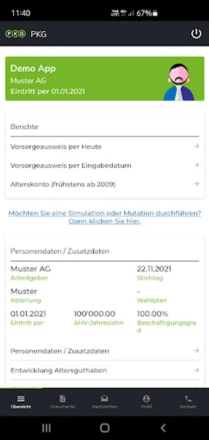 You can use the PKG Pension Fund app to access your data but also to perform your own simulations and view benefit changes. The app is intended to make it easier for you to plan for your pension.
