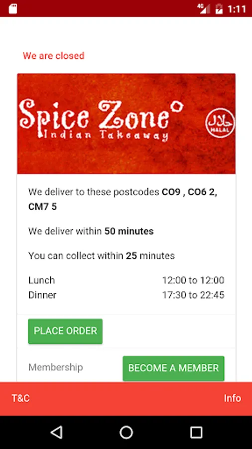 ** This application is for the customers of Spice Zone, Halstead, UK **