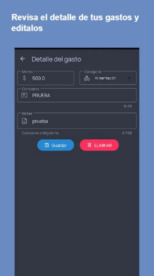 Check on a daily, monthly or total basis, all the movements that you have recorded for expenses as income.