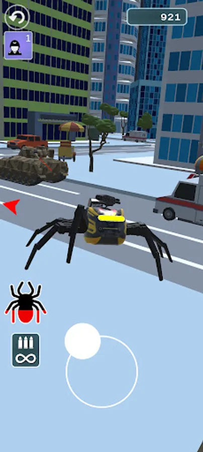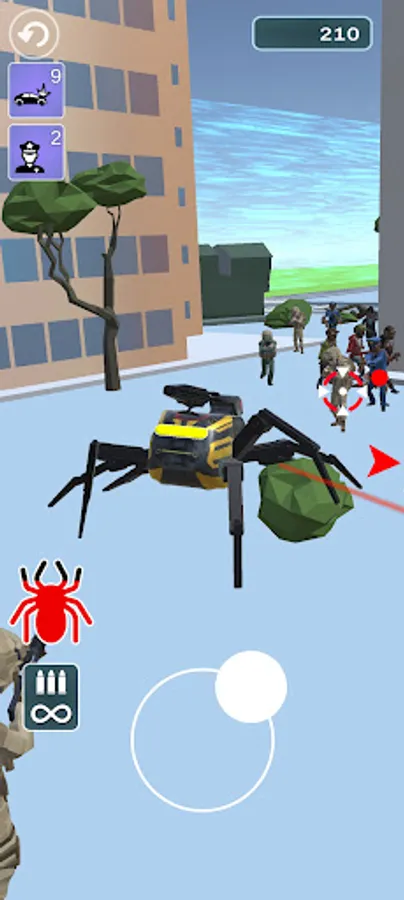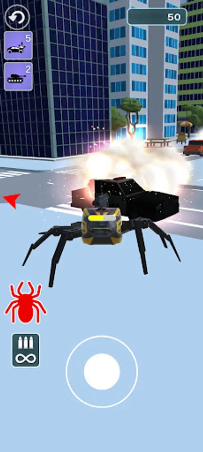 Destroy everything in your path. Enemy tanks and helicopters can't withstand the power of your machine gun and destructive legs.