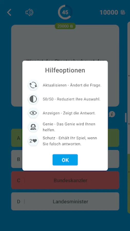 If you need help, you can use the famous helps and enjoy the Millionaire