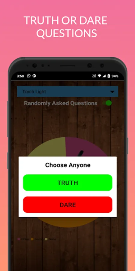 This Game name is truth or dare . This game help you to play game with your Friends . and spend time with together .