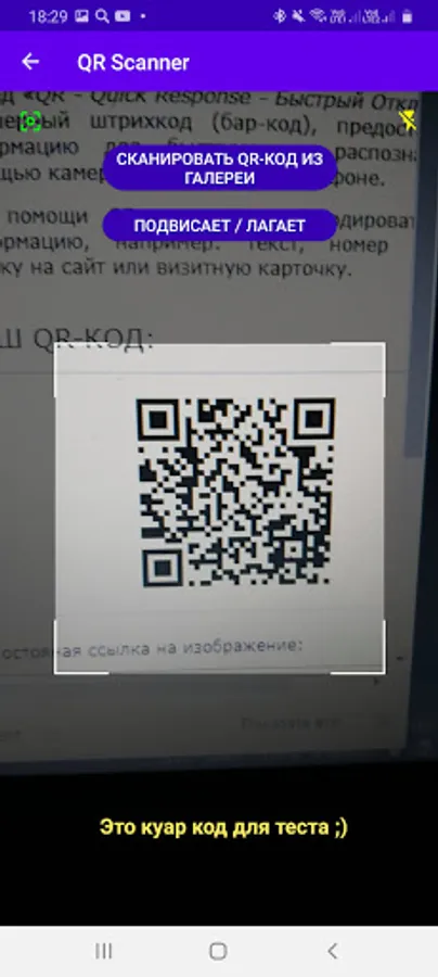 ⚡ Our application is a convenient and simplest quar code scanner in Russian! For a successful scan of any QR code or barcode (barcode), you need to go to the menu in the "Scanner" section -> point the camera at the Qr / Bar code, and wait for the result!