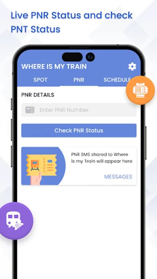 Train App - Book Tickets, PNR Check Live Train Status, Check Train Time Tables, Get Live Station Status, Check Train Schedule Get Seat / Berth Map. spot my train is a feature that helps to spot your train with the help of railway pnr status or just directly type the station name or you can also type train number to see live running status.
