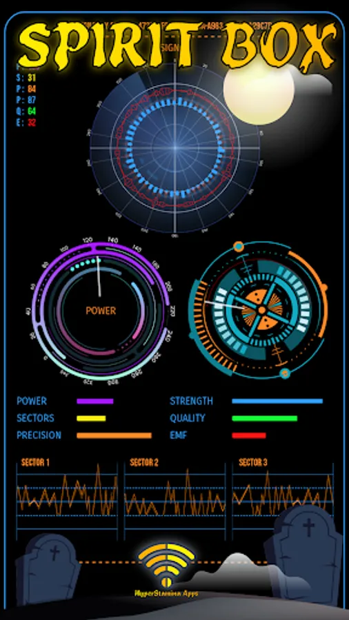 Includes all kinds of simulated real-time information that shows data such as Signal Strength, 3 Spirit Communicator Control Sectors, SpiritBox Signal Accuracy and Ghost Detector Strength, Ghost Radar Signal Quality and by It also simulates the Electromagnetic Forces detected. Ghost Detector and Communicator is an entertainment application that includes a Ghost and Spirit Radar that simulates a detector psychophonies and that you can download for free.