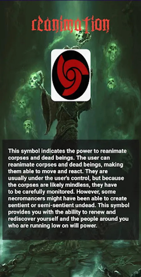 Necromancer: The necromancer is a powerful sorcerer of the dark arts and death magic. He has magical powers to manipulate the dead, mystical forces and souls. He can resurrect the dead and communicate with their spirit, for divination to foretell future or discover secrets. The necromancer can cheat death by conjuration, occultism & spirit magic. He empowers you with his symbols of dark magic.