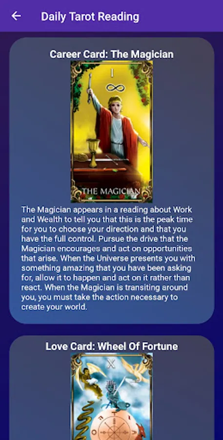 Tarot Cards is a free daily tarot and oracle cards app which will reveal the divine secrets of your spirit. It will guide you in your journey into the mystical world of your spirit through the Daily Tarot Cards and Oracle Cards from the Spiritual Masters of Magic, Alchemy, Necromancy, Shamanism, Yoga and Buddhism. The tarot cards are used as a divination tool to connect to other realms and altered state of consciousness, and to direct these spiritual energies into your physical world.