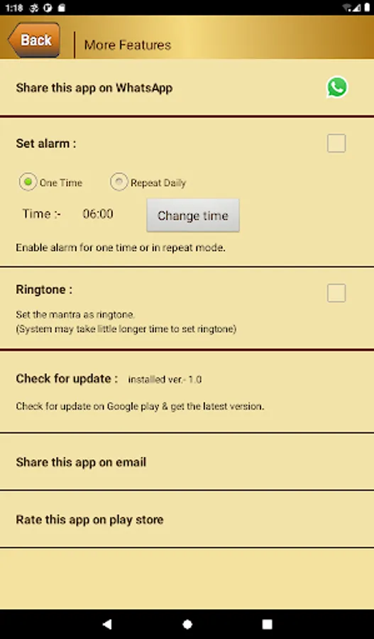 Om Mantra app with the following feature:
