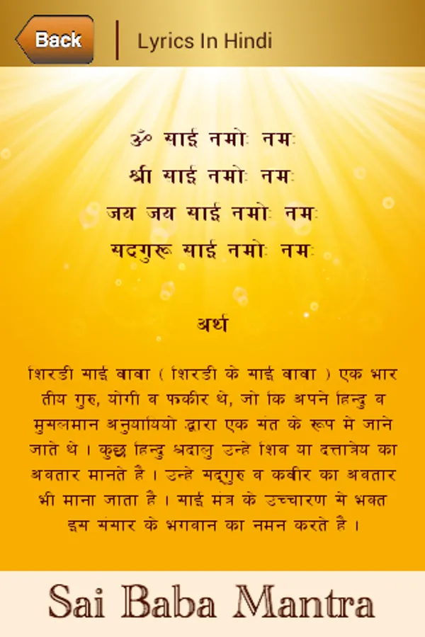 Best Sai Baba Mantra app with the following feature: