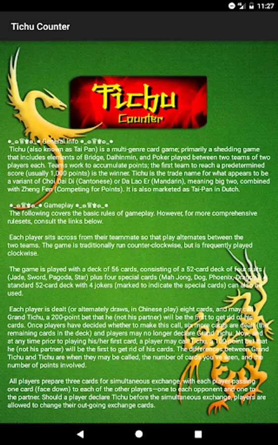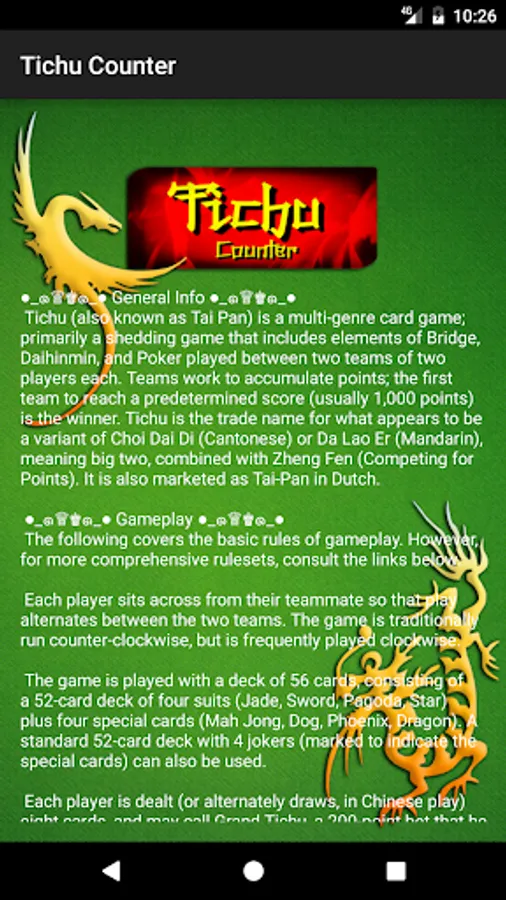 Tichu Counter is referred to players that just want to keep scores for real life tichu lots.
