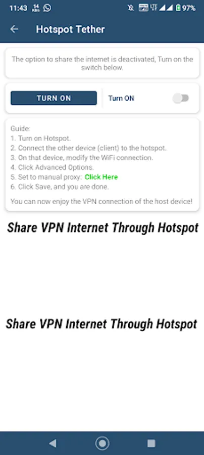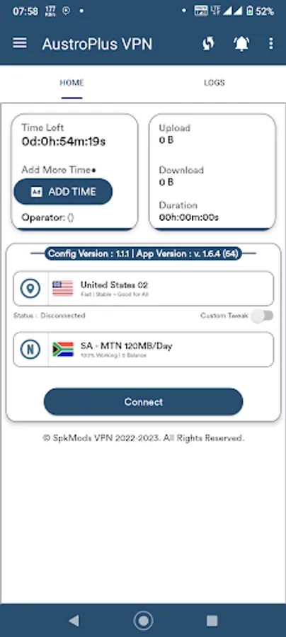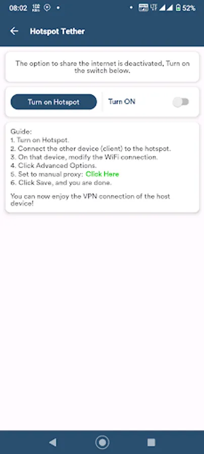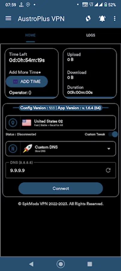 A single tap of the Connection button is all it takes to start a secure and stable VPN connection, For free unlimited access to the internet browsing.