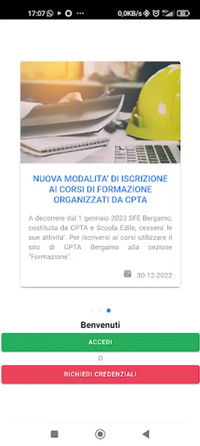 Services to construction workers enrolled in Edilcassa Artigiana of Bergamo. Possibility to consult information concerning Assistance, APE, and Interim Certificaizone Unica.