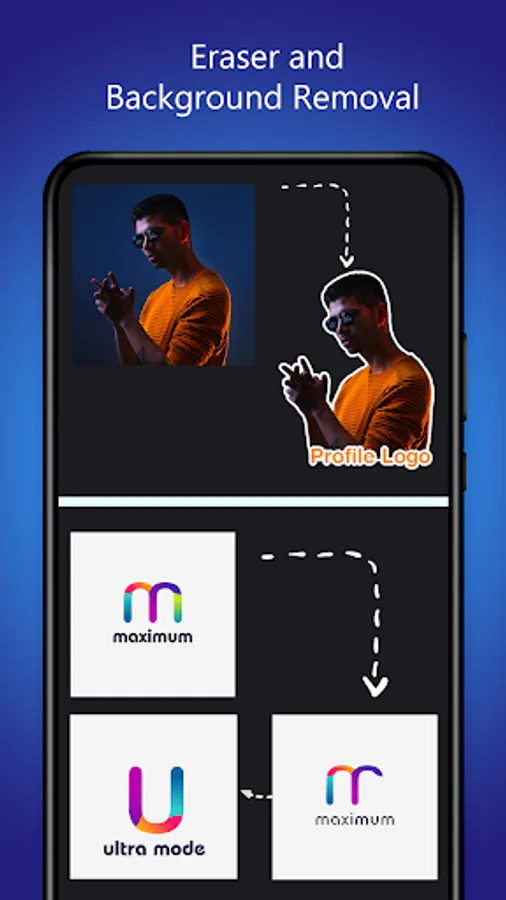 6. Logo Editing tools for graphic design such as photo filters, rotate, textures, 3D Rotate, Resize, Crop image by shapes and automatic background remover and image eraser.