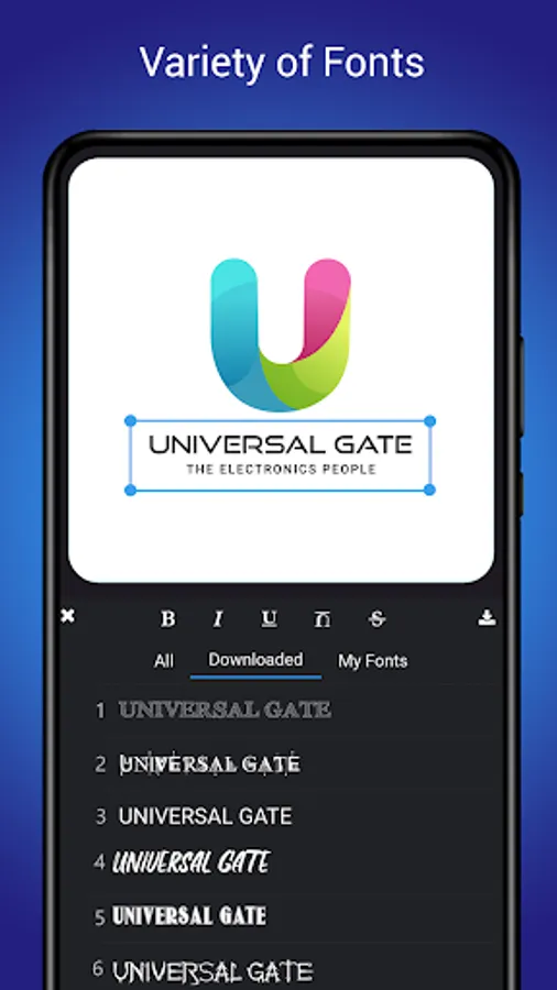 3. 100+ Font styles, Add typography, text effect, text art, business name art maker, slogan, symbol, icon, label and monogram maker.