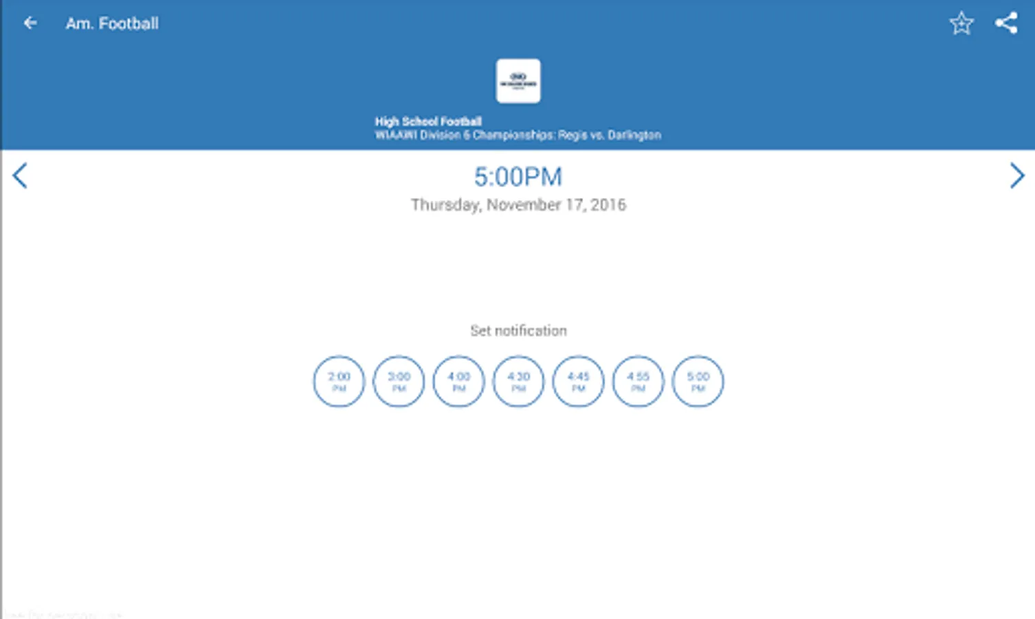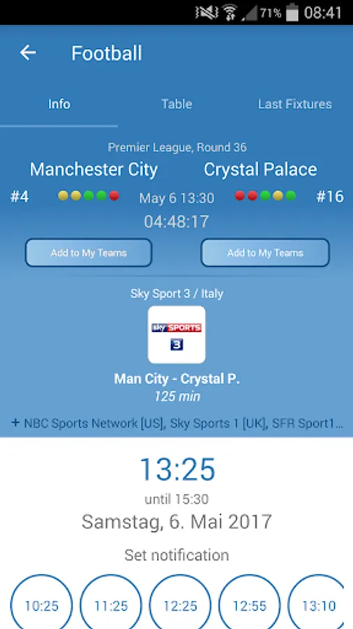 - Add live fixtures to your Calendar or set a Notification