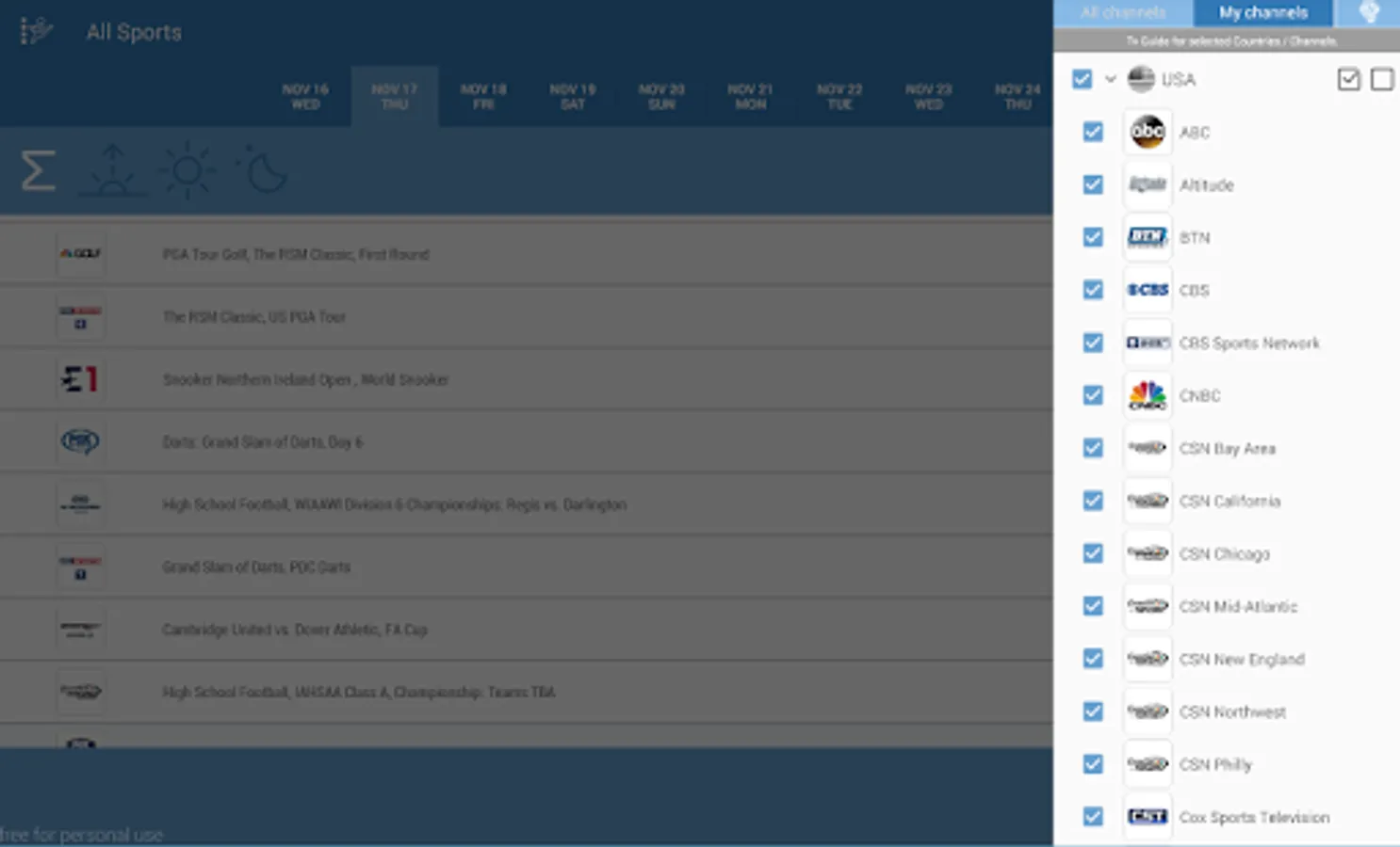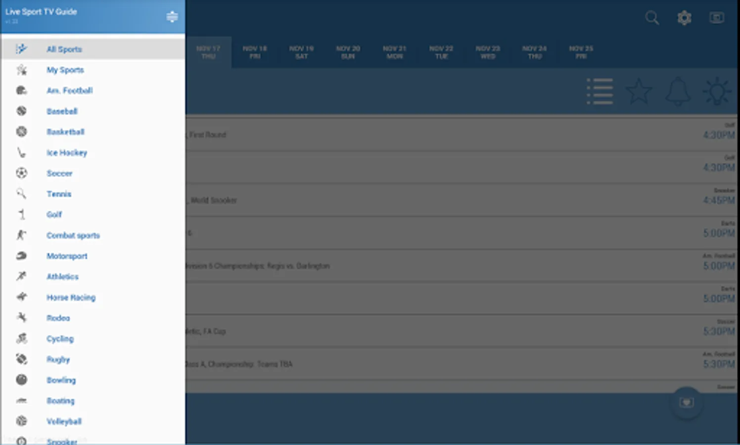 The "Live Sport TV Listings Guide" app is a comprehensive sports TV Listings guide: