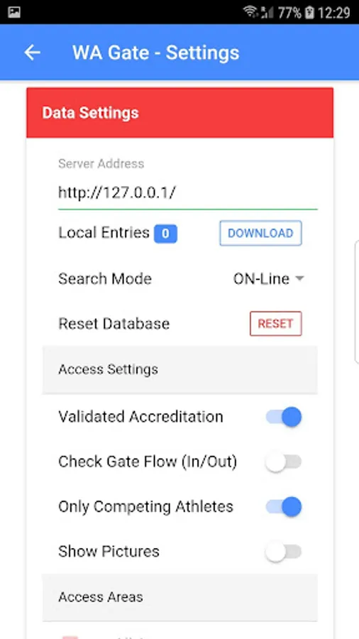 Application for controlling access to the different area of archery venue based on the 7-zone coding in use in WA events related.