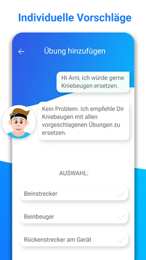 As a partner of your fitness club, we provide you with the service of our KI personal trainer. This creates individual training plans, applying intelligent upgrading systems and is always up to date scientifically. It accompanies fitness club members step by step through training, provides analyzes based on it and plans both daily updated, as well as long term.