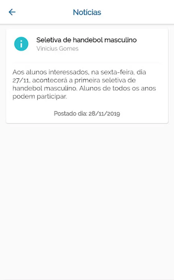 The main objective of the project is, through the application, to encourage sports at school, contributing directly and indirectly to the student's academic development, since the practice of sports can be very beneficial to the practitioner's health, along with the integration through physical activity.