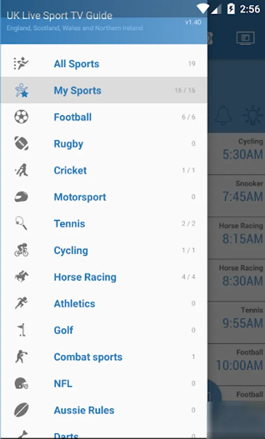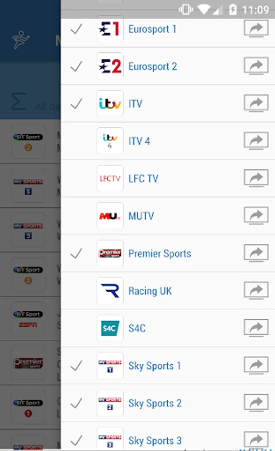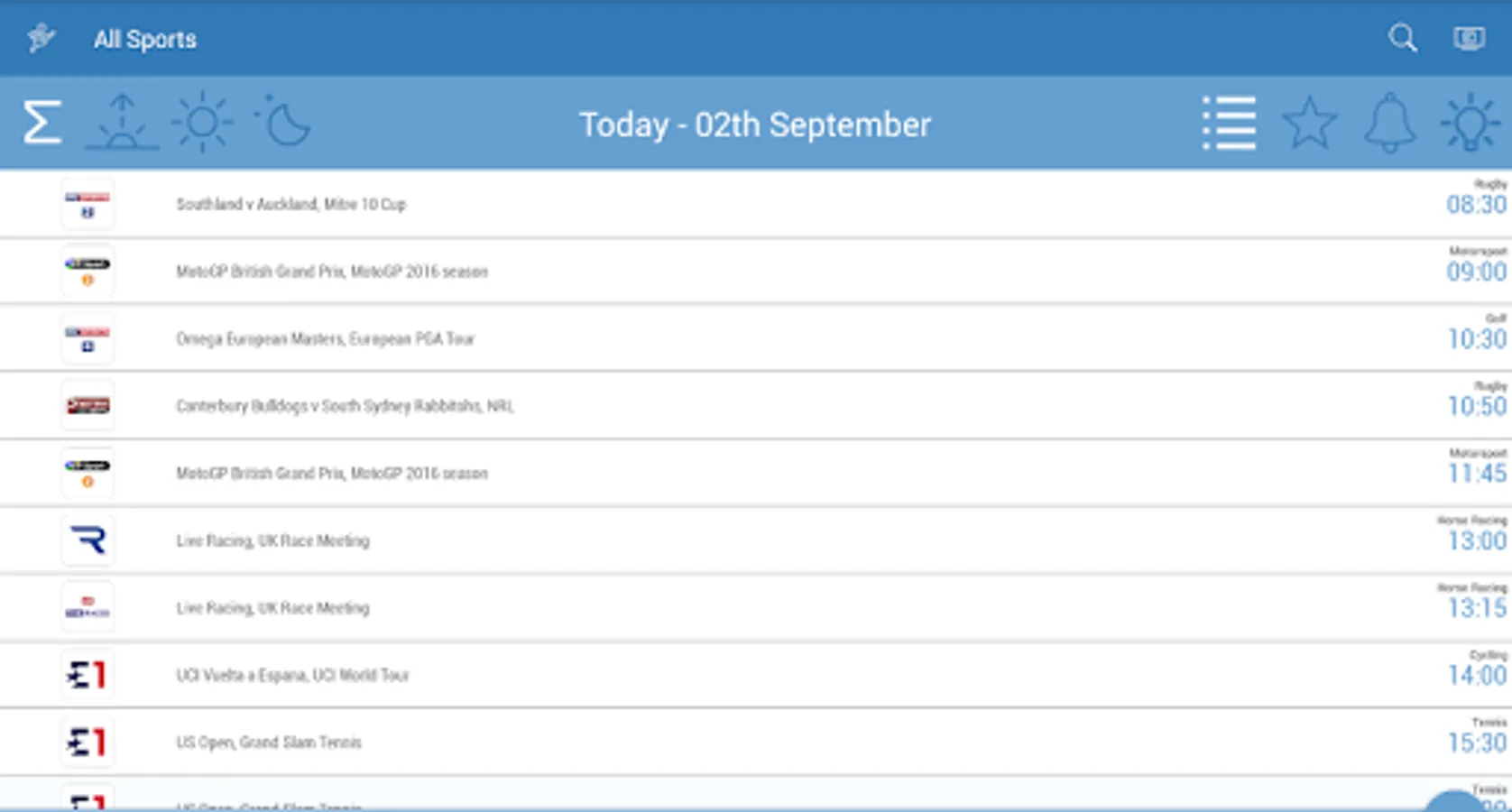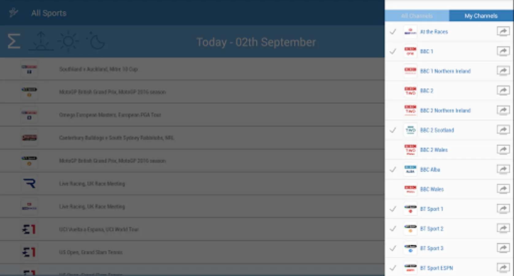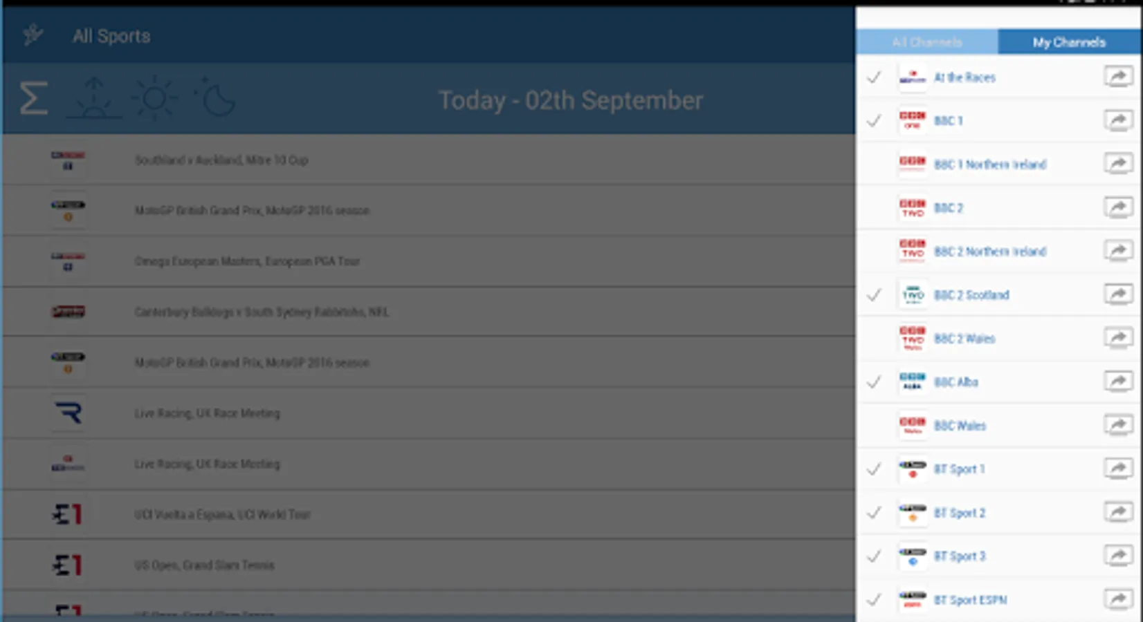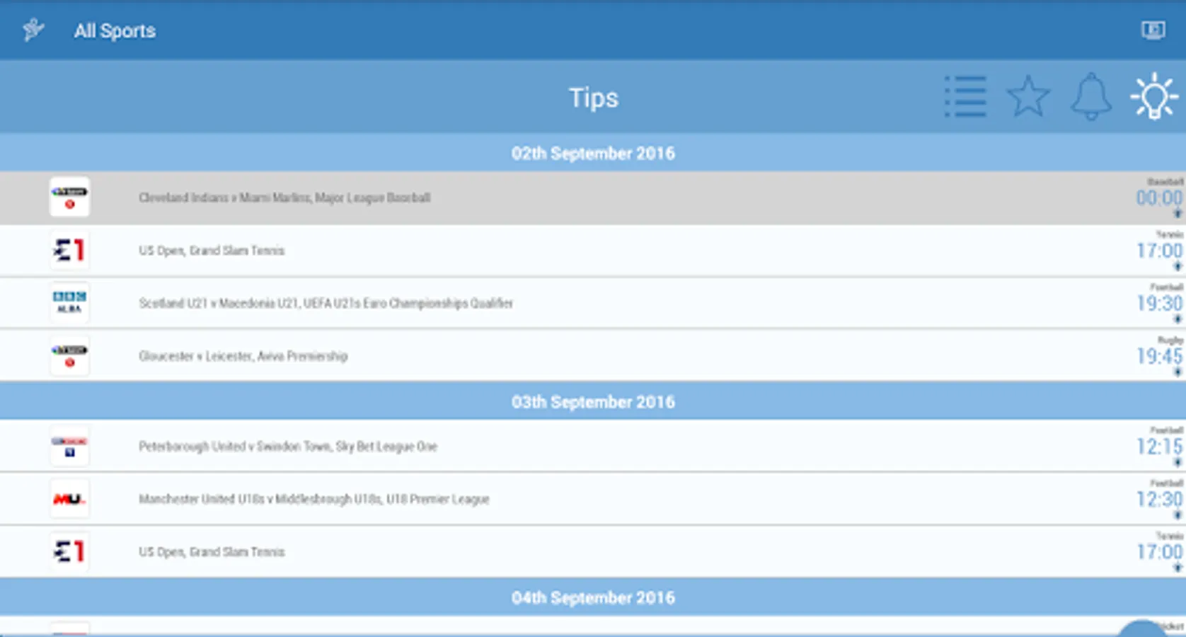 - Refine matches by channel, sport, date and time of day(morning, afternoon, evening)