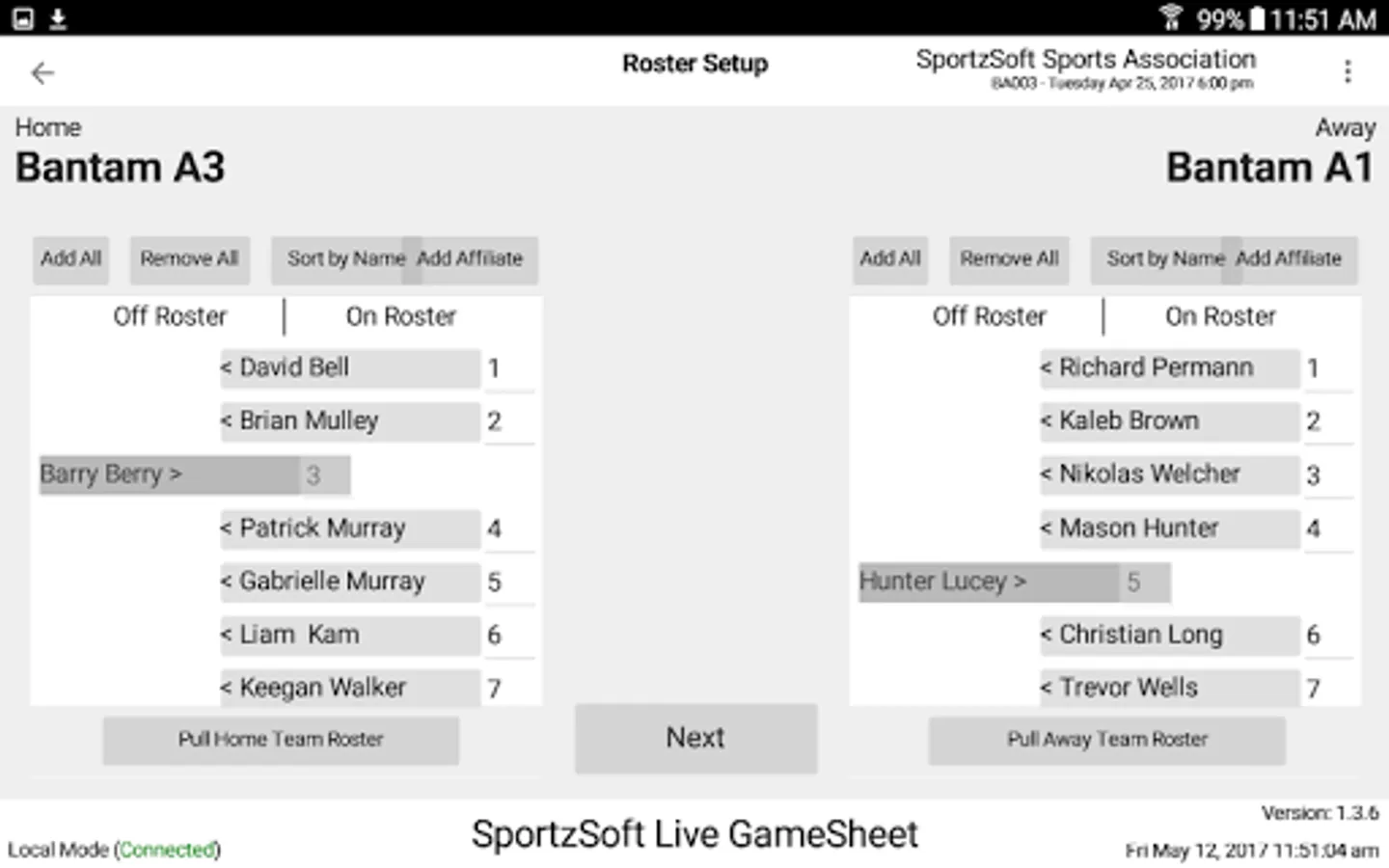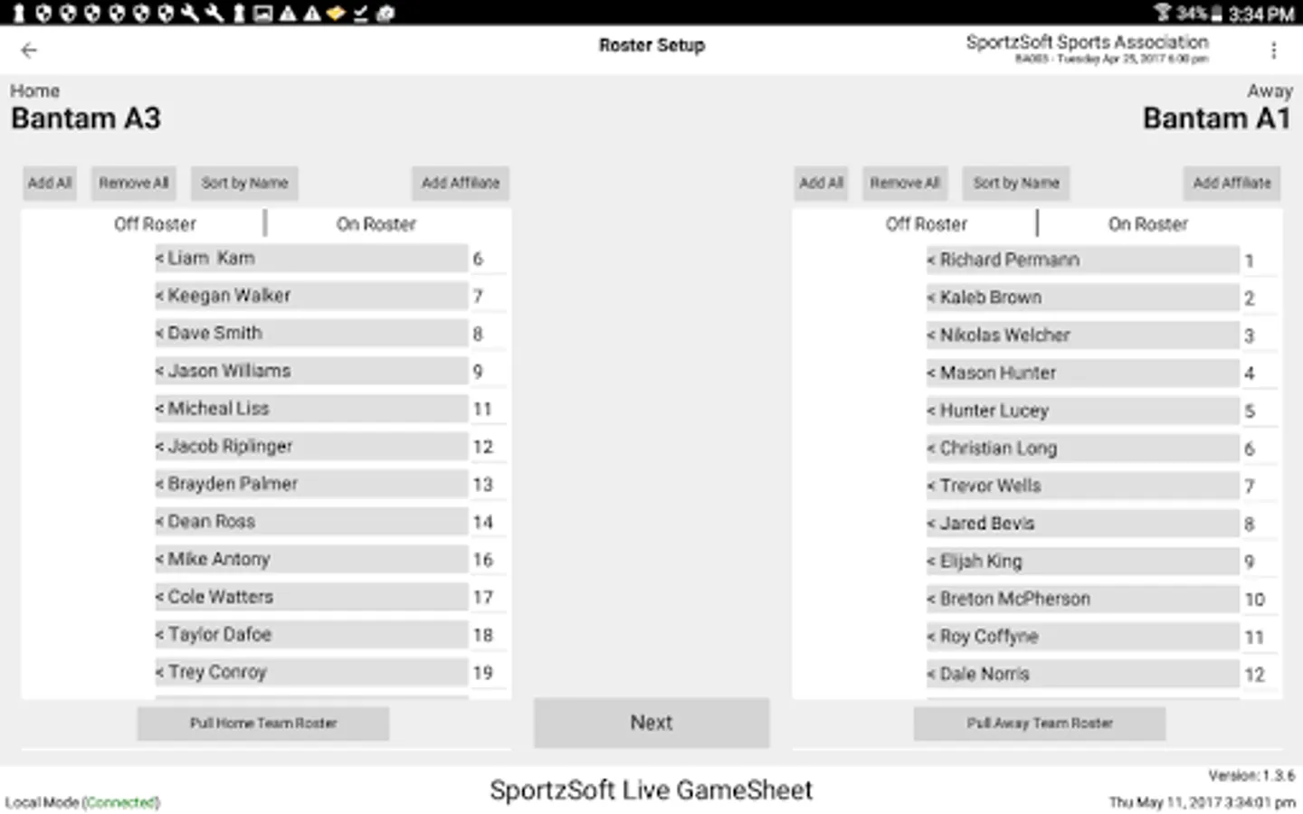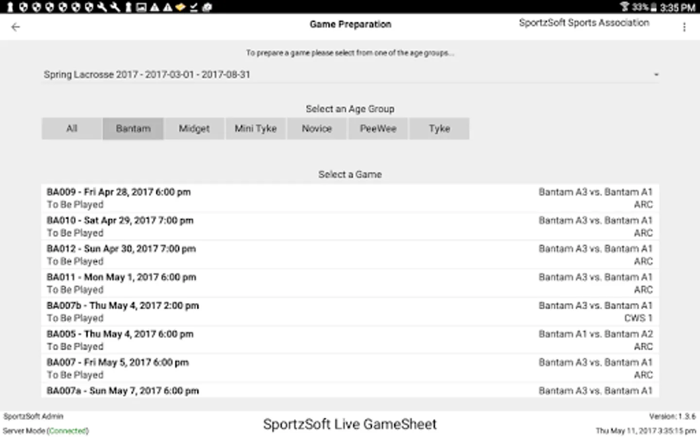 Only known accounts within the SportzSoft server system will be able to obtain access to prepare, score and upload game sheets.