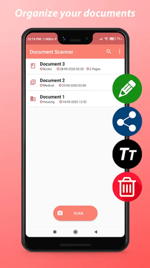 Our Document Scanner application also offers you the OCR optical character recognition feature which allows you to extract text from your document, edit and then share the text directly through social networks or through ordinary sharing tools.