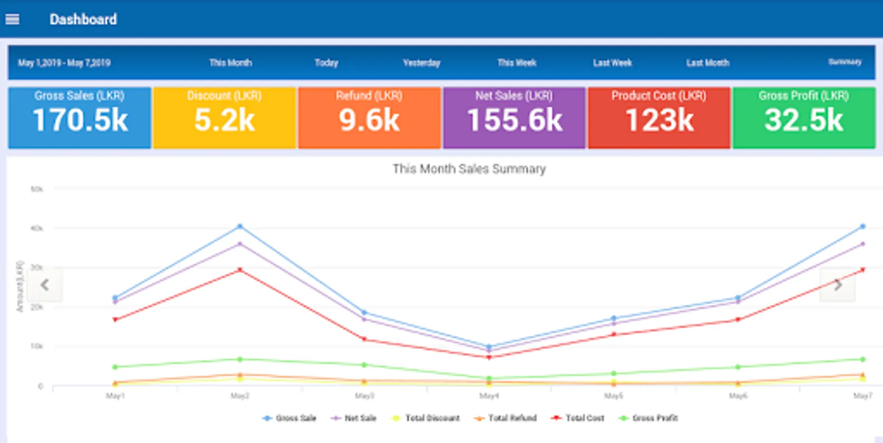 View Gross Sales, Refunds, Discounts, Net Sales, Total Cost, and Gross Profits