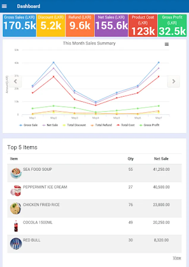 Sales Play Dashboard provides key business information instantly. You can analyze sales and track inventory directly from your smartphone or tablet anytime, anywhere.