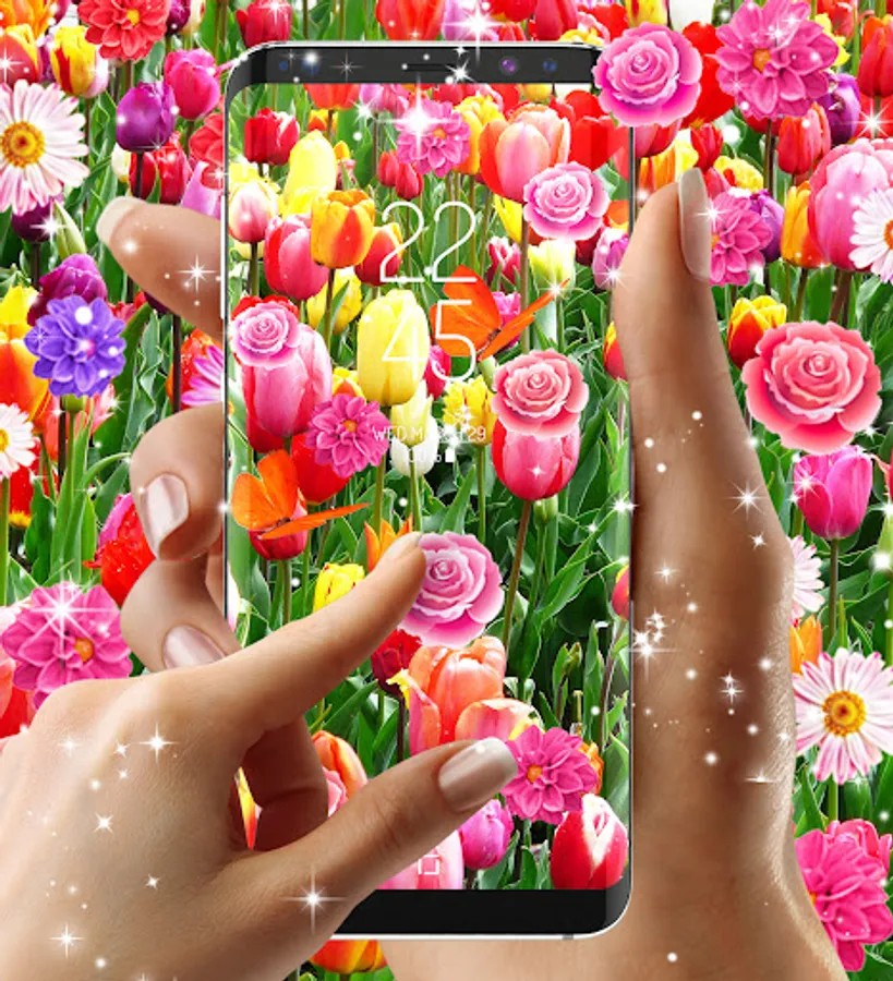 You will be delighted with so many flowers on your background. Flowers included in this app: roses, red roses, pink roses, blossom, daisy, gerbera daisies, anthurium, violets and many others.