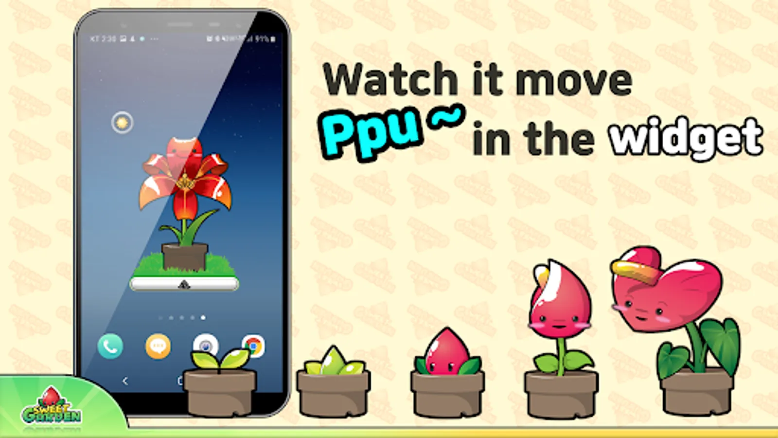 - “Ppu”, the pet in Sweet Garden, moves in the widget as if it were alive.