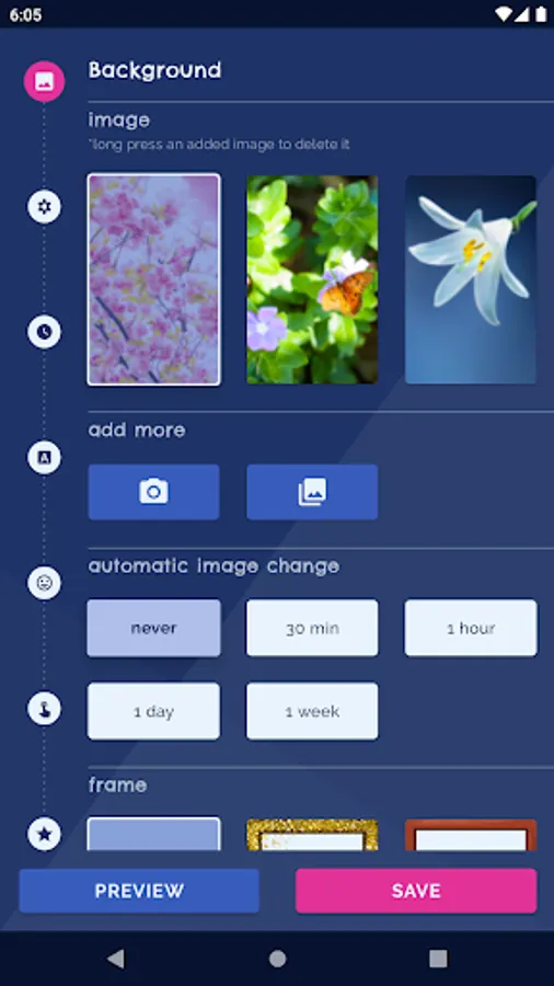 You can choose one of our many HD backgrounds or you can add your own pictures! You can set up an automatic background changer with magic touch!