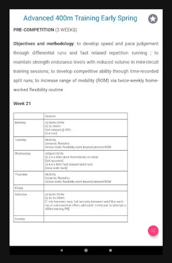 The 400m is a sprint with athletes running at over 90% of maximum speed for the one lap. To do this requires great physical and mental strength. The athlete, for example, has to build up a tolerance to the “waste products” that build up in the bloodstream (lactic acid is formed which has a stifling effect on performance). The good news is that regular and relevant training will enable all athletes to maximize their potential and this app contains all the necessary training and workouts.