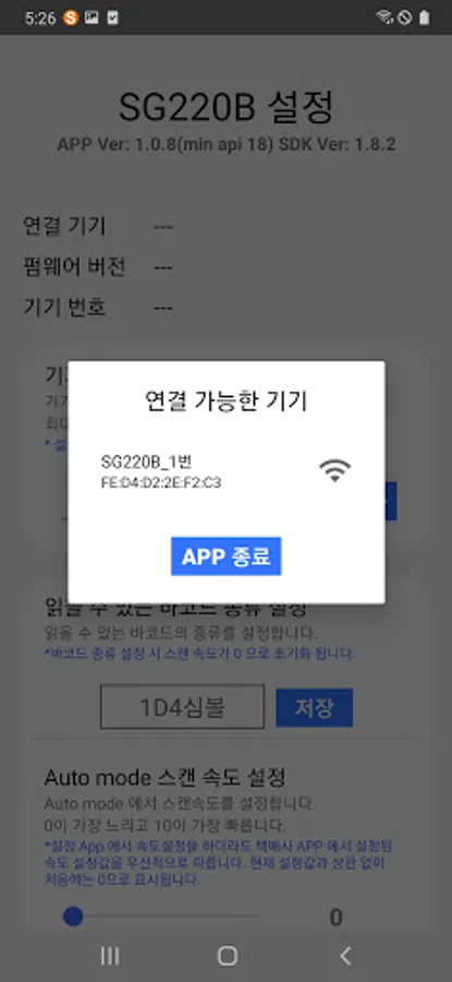 Barcode reading test: Turn on/off the barcode reading function test of the device after connecting FingerBLE