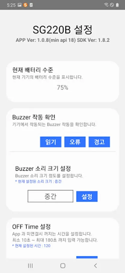 OFF Time Setting: Set the time to turn off when FingerBLE is not connected to the App