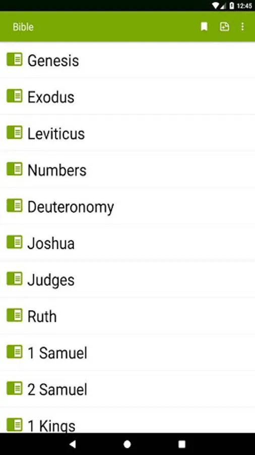 Old Testament: Genesis, Exodus, Leviticus, Numbers, Deuteronomy, Joshua, Judges, Ruth, 1 Samuel, 2 Samuel, 1 Kings, 2 Kings, 1 Chronicles, 2 Chronicles, Ezra, Nehemiah, Esther, Job, Psalms, Proverbs, Ecclesiastes, Song of Solomon, Isaiah, Jeremiah, Lamentations, Ezekiel, Daniel, Hosea, Joel, Amos, Obadiah, Jonah, Micah, Nahum, Habakkuk, Zephaniah, Haggai, Zechariah, Malachi.