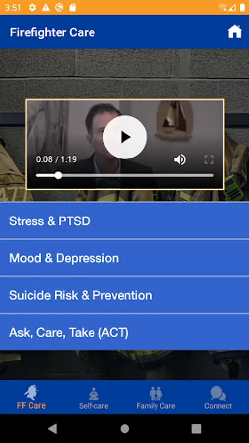 Supporting Firefighter Families is a free app developed by health care professionals at the Center for Firefighter Behavioral Health at the Medical University of South Carolina in collaboration with the National Fallen Firefighters Foundation. This app was designed for spouses and family members of firefighters who are interested in learning how to support their firefighter and care for themselves and their family through difficult times. This app includes several resources including mental health education, demonstration videos, strategies for improving positive communication, and best practice self-help coping skill resources.