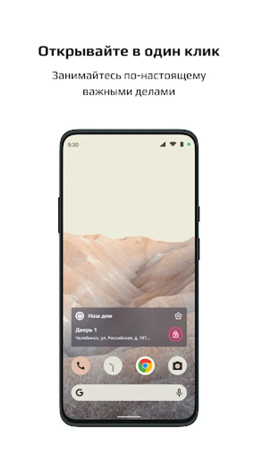 Open the door with your mobile phone, so you don't need keys. Customize the widget or use the door open button in the app's main screen. If you have guests coming and you're not at home, you can take a video call on your mobile phone wherever you are.