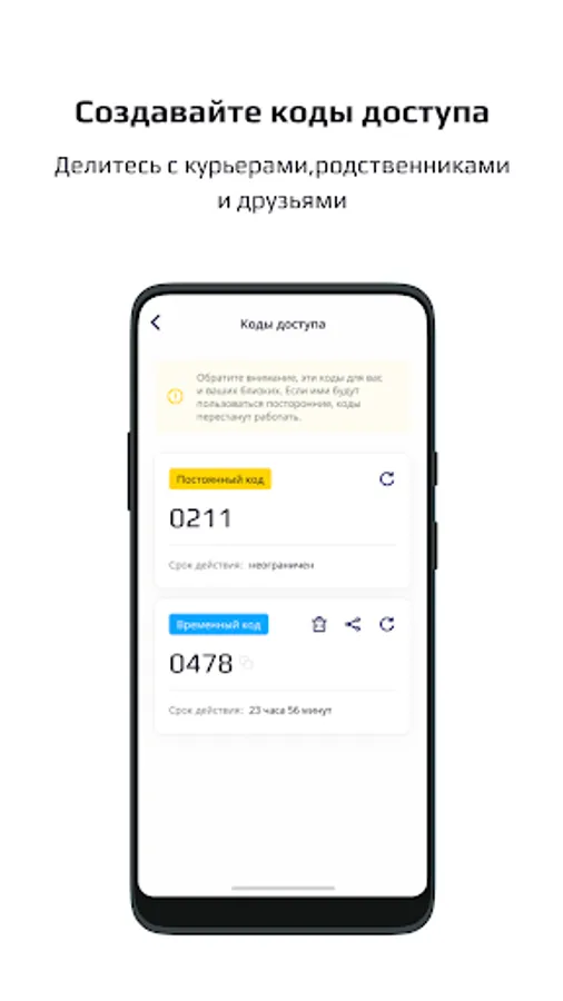 The intercom temporary code allows your guests to easily enter the entrance without disturbing you with calls, and the courier will be able to bring the order directly to the apartment door.